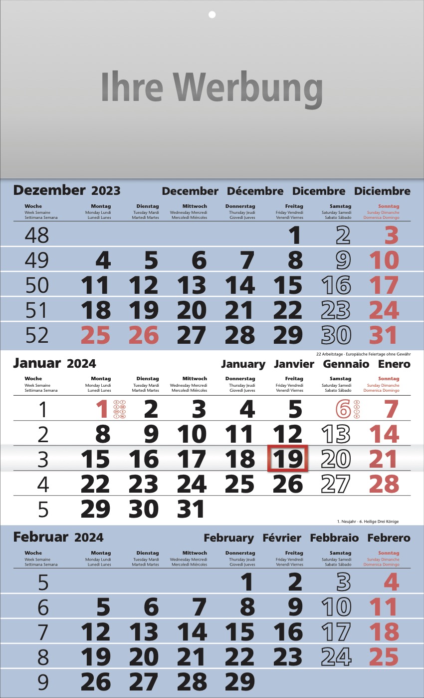 3-Monatskalender - hellblau